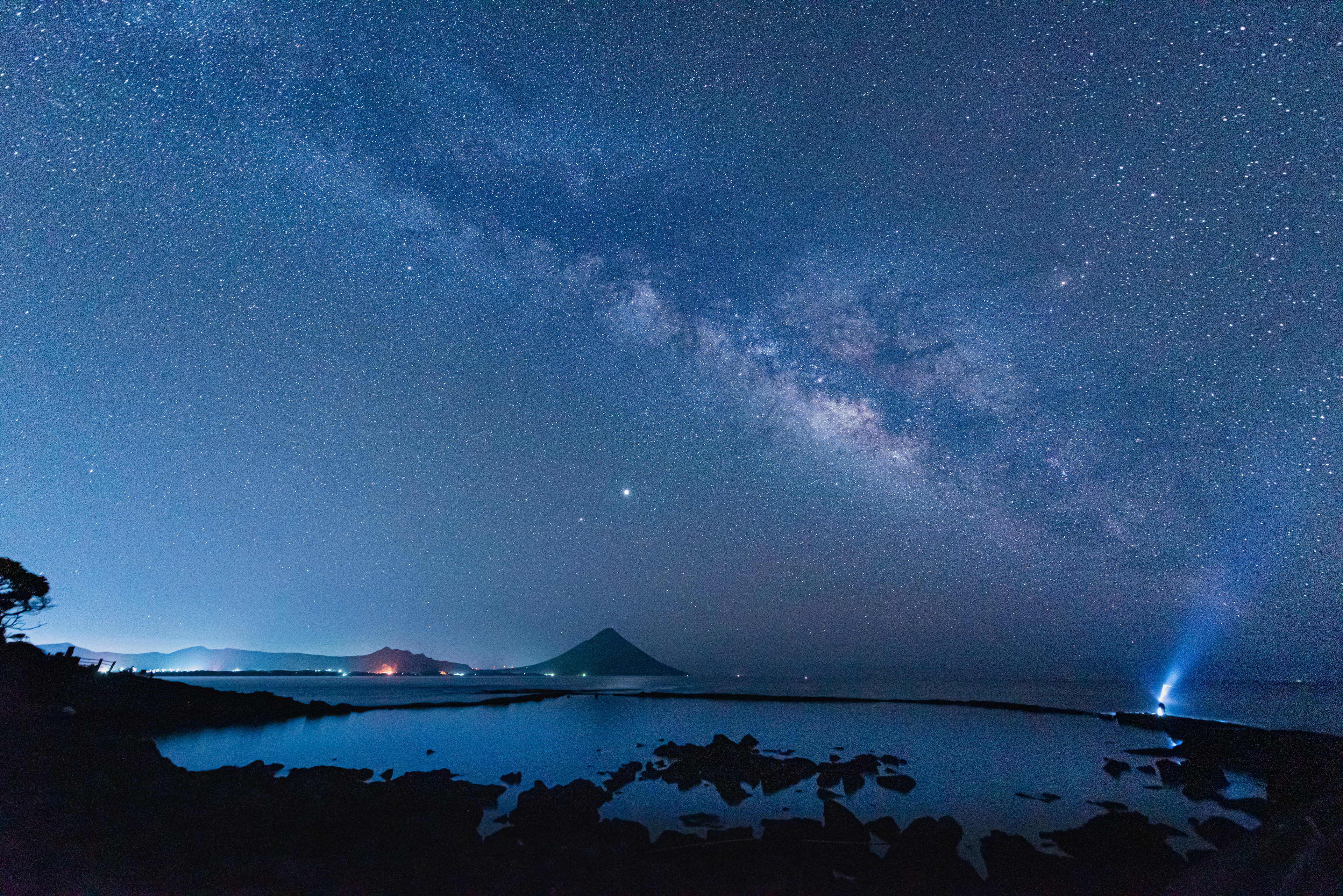 ペルセウス座流星群の夜、鏡池にて夏の天の川
